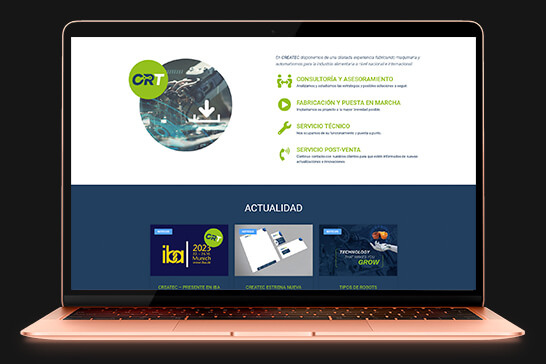 CREATEC es una empresa especializada en desarrollar, proyectar, fabricar e implantar líneas de producción y sistemas robóticos para procesos productivos industriales.
