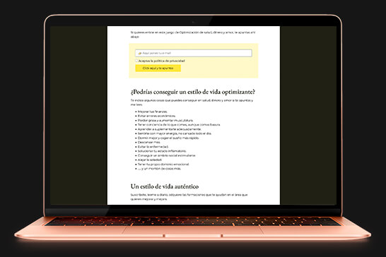 Creamos una landing page optimizada para la conversión, donde solicitábamos el correos de los visitantes, con el objetivo de impactarles más adelante mediante acciones de email marketing.